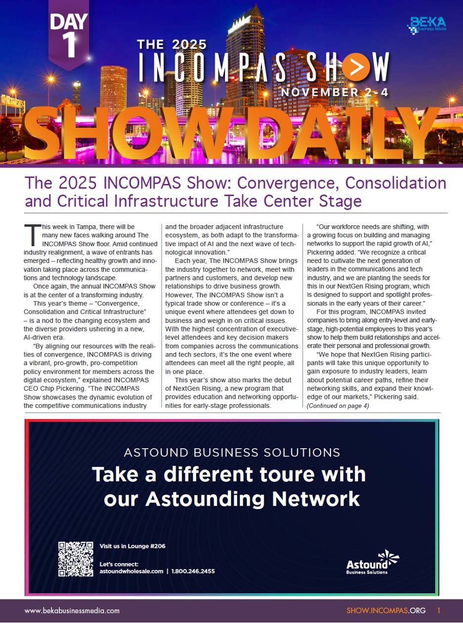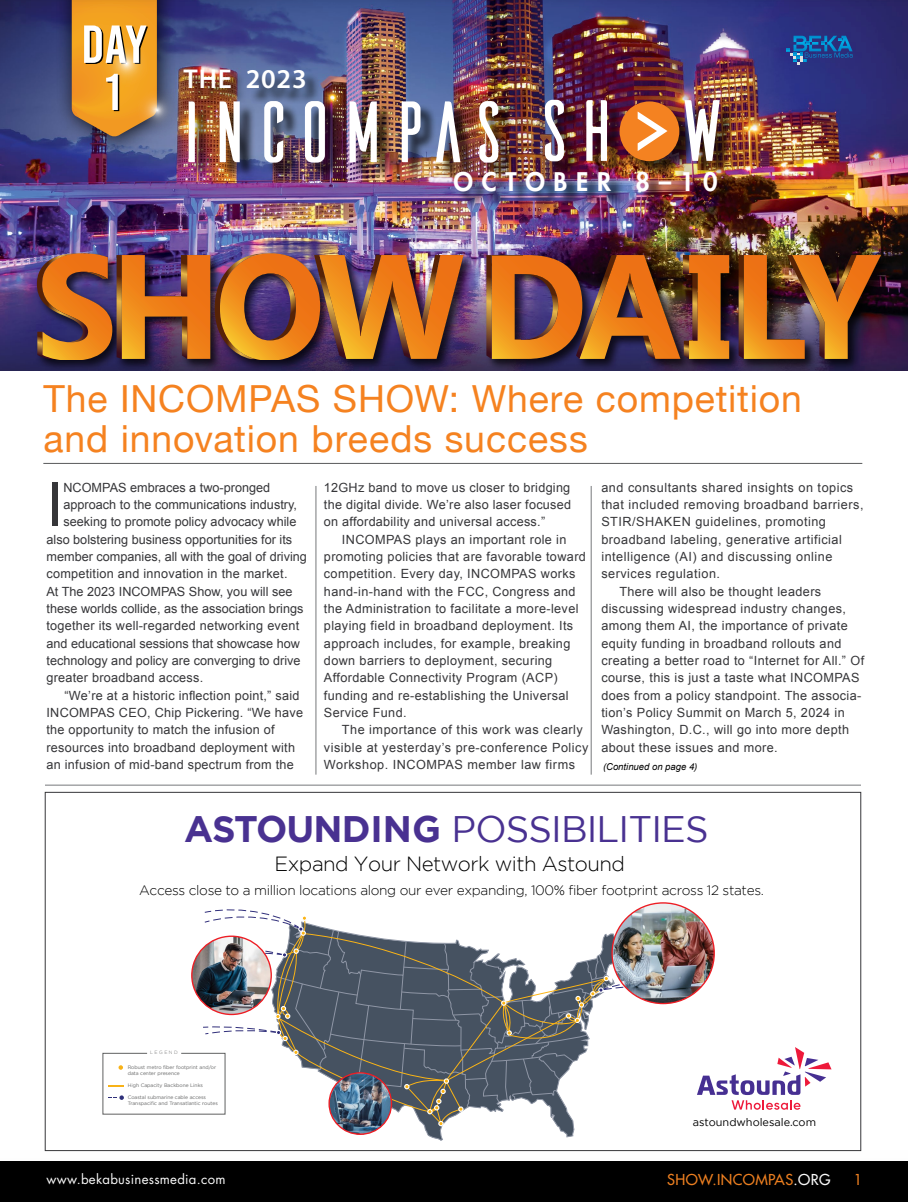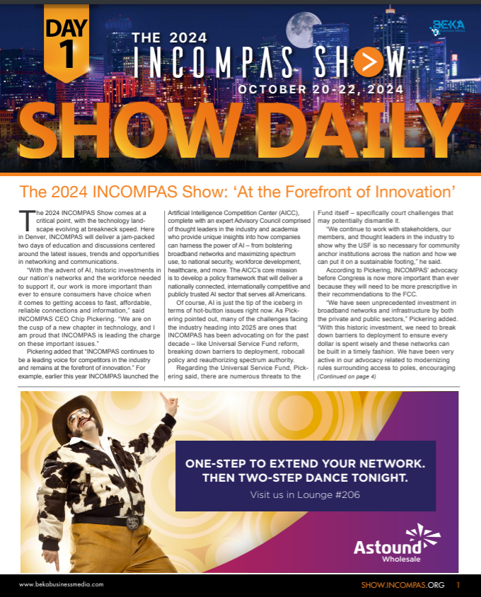 Welcome to The INCOMPAS Show press room. Complimentary press registration is available to accredited media, journalists, reporters, editors and correspondents, as well as industry analysts who wish to cover The INCOMPAS Show.